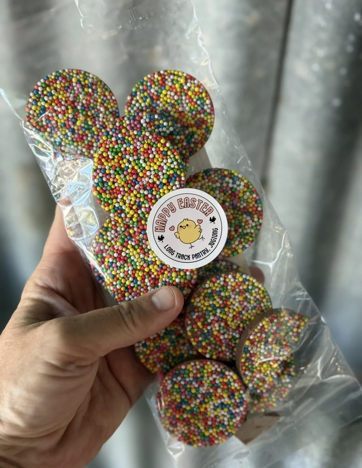 A childhood favourite with an Easter twist.  Our giant chcocolate freckles are topped with colourful sprinkles and packaged in signature Long Track easter packaging. Fun, nostalgic and perfect for Easter baskets, they’re guaranteed to bring smiles to chocolate lovers of all ages.