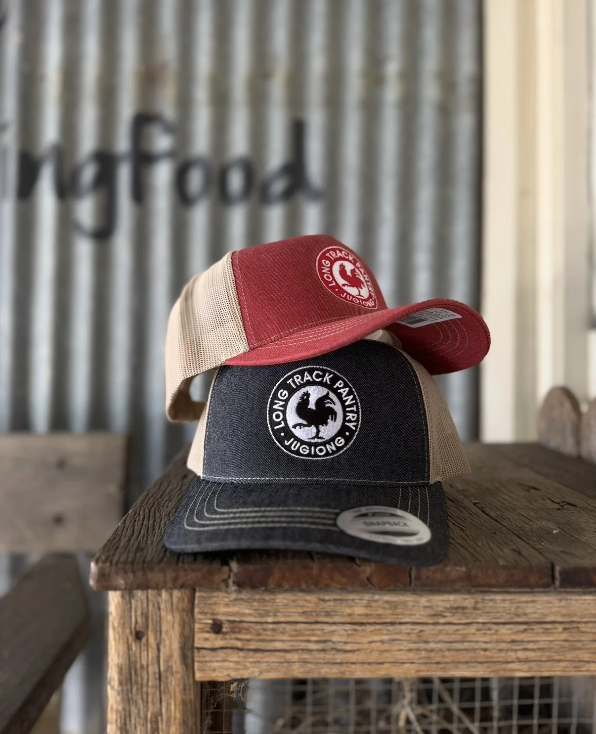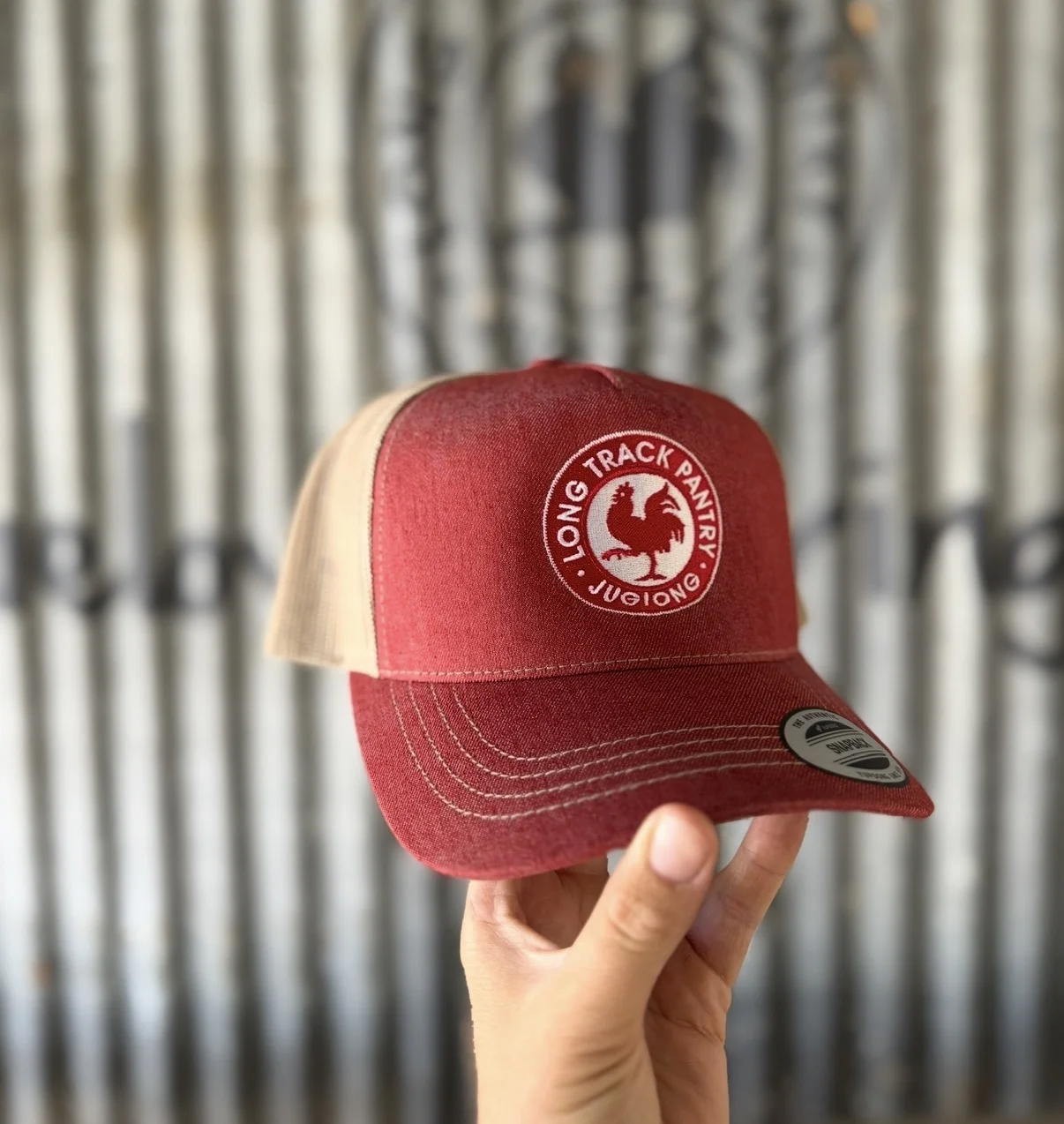 / Long Track Pantry Cap Red Denim