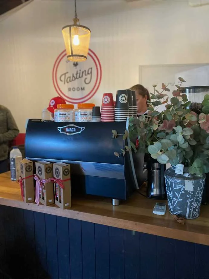 Pair your tasting with a hot coffee or a slice of house-baked cake, then browse the shelves for gifts, pantry staples or indulgent treats.